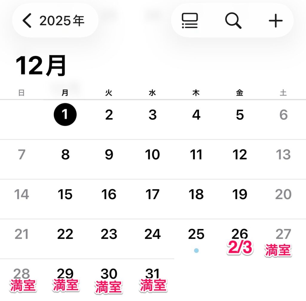 この記事を書いている段階では1月後半と2月は予約状況が厳しい(泣)