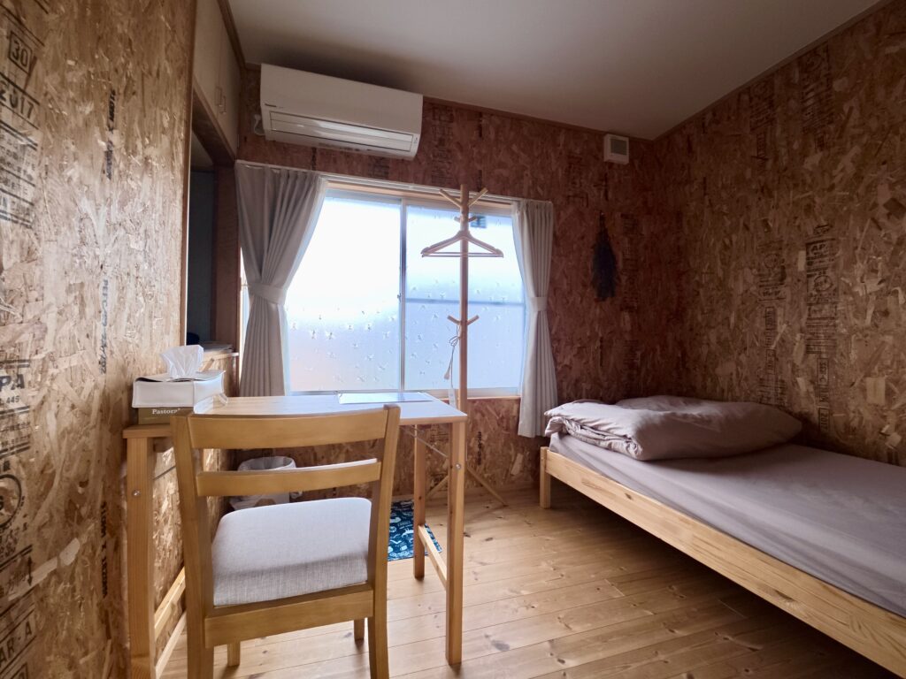2026年度より館内2階の洋室2部屋(2段ベッドルームとシングルルーム)のテーブルと椅子を新しくしました。